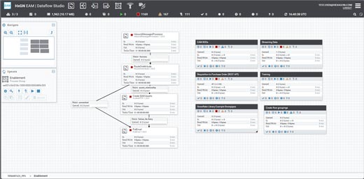 Parte de Databridge Pro, dataflow studio es la interfaz gráfica sin código donde los usuarios pueden crear y configurar flujos de datos personalizados entre HxGN EAM y otras aplicaciones empresariales que proporciona un manejo seguro y en tiempo real de los datos, desde su entrada, pasando por las transformaciones y su recorrido entre sistemas; altamente adaptable para satisfacer diversas necesidades de integración y ofrecer una gama de procesadores dedicados a tareas que van desde la transformación de datos hasta la validación, el enrutamiento y el enriquecimiento.